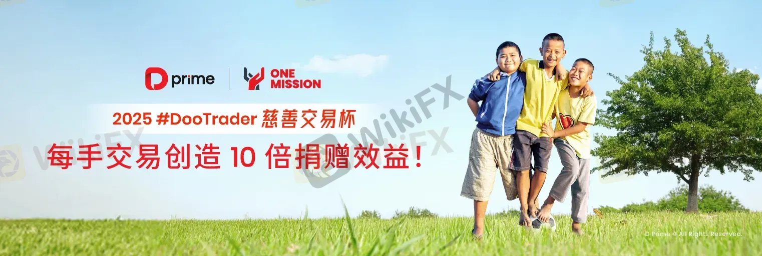 每当您在比赛中完成 1 手交易,D Prime 都将代表您捐出 0.1 美元,帮助改善贫困儿童的教育条件,让您的每一笔交易助力点亮更多孩子的未来。