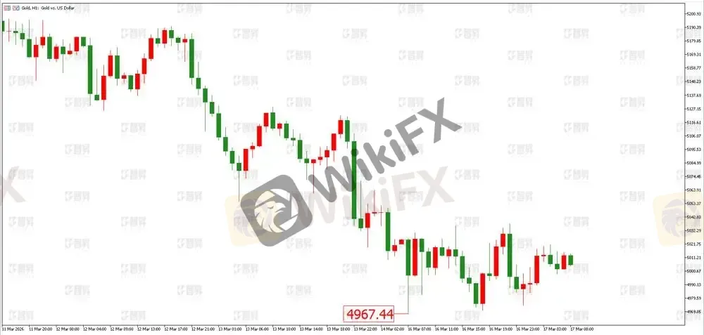技术面:黄金昨日(3月16日)下跌至4967美元后,围绕5000美元上下震荡。短线来看,若不能上破5050美元,则有望进一步下跌,下方关注4920美元一线的支撑。
