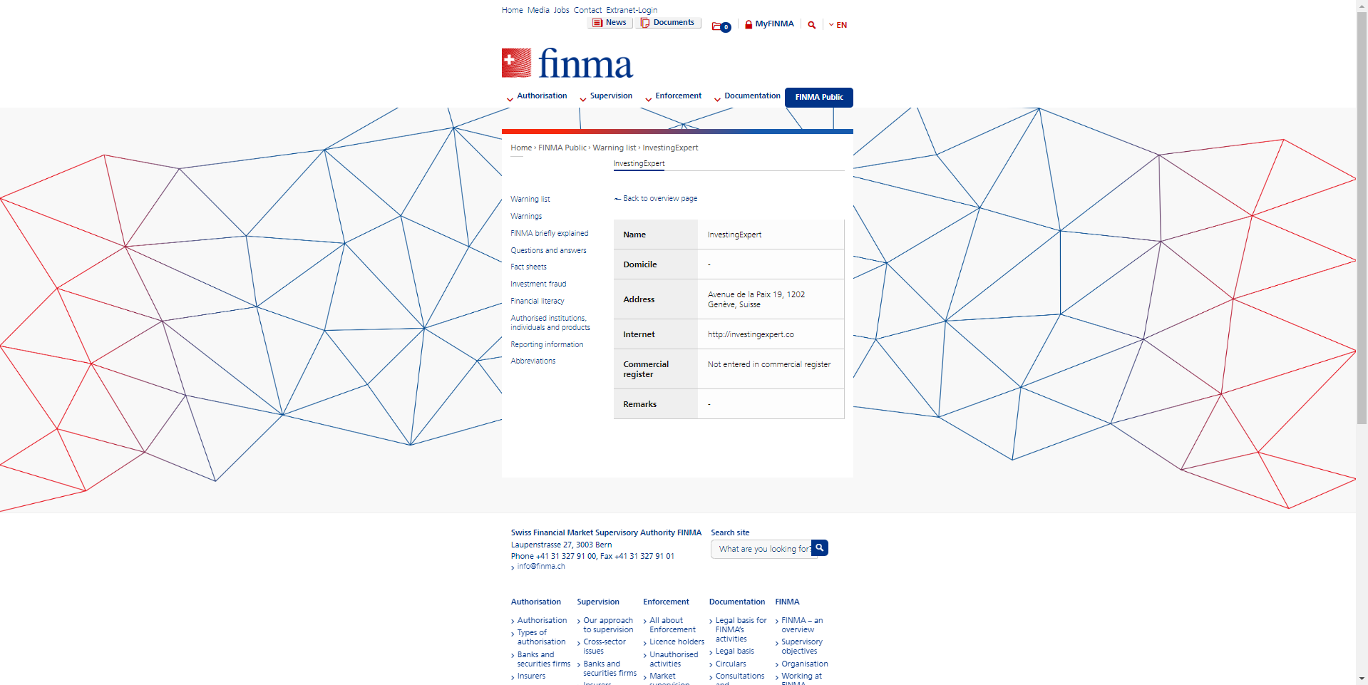 未经授权的公司和个人警告名单 警告名单 - InvestingExpert.