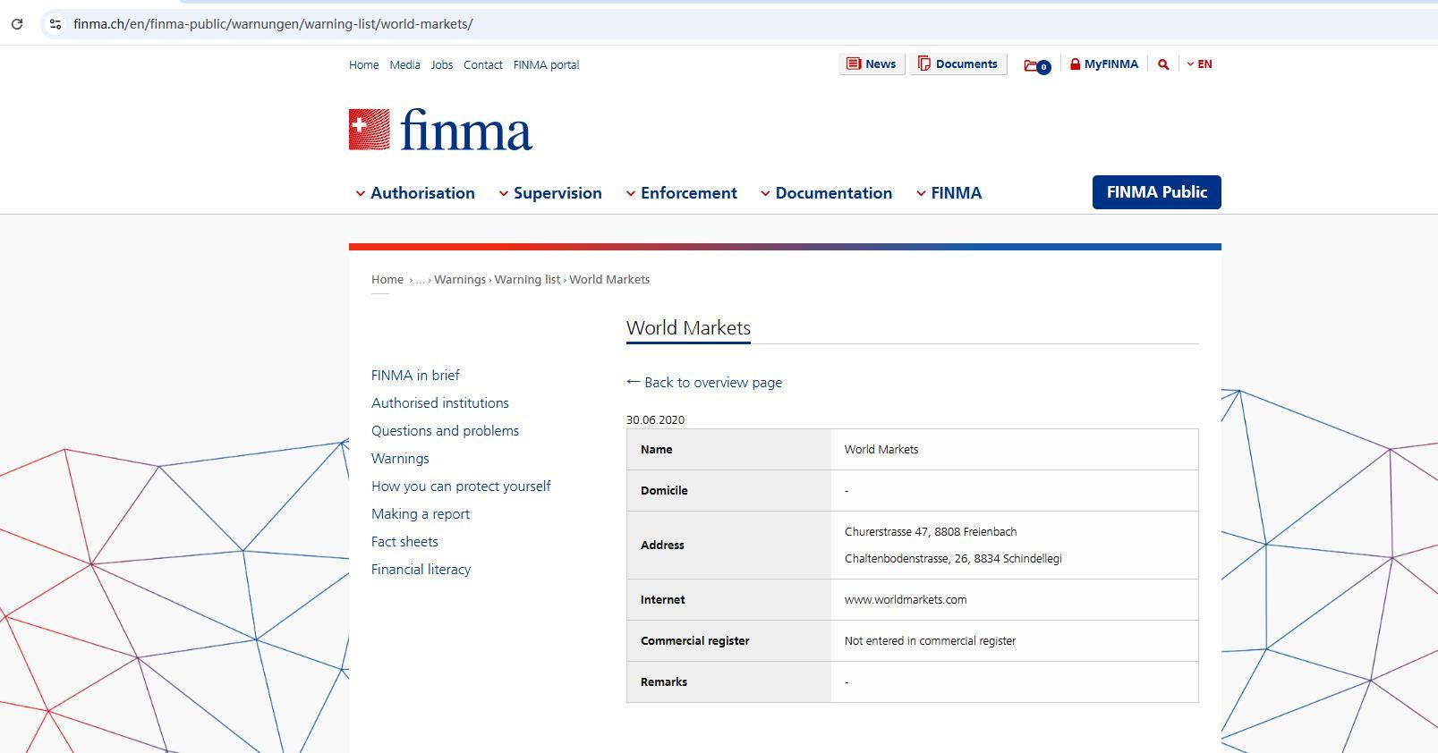 瑞士金融市场监督管理局(FINMA)是一个独立的金融市场监管机构。FINMA负责监督银行、保险公司、交易所、证券交易商、集体投资计划及其资产管理公司和基金管理公司。此外,FINMA还监管分销商和保险中介。FINMA的职责是保护债权人、投资者和保单持有人的权益,同时确保瑞士的金融市场有效运作。