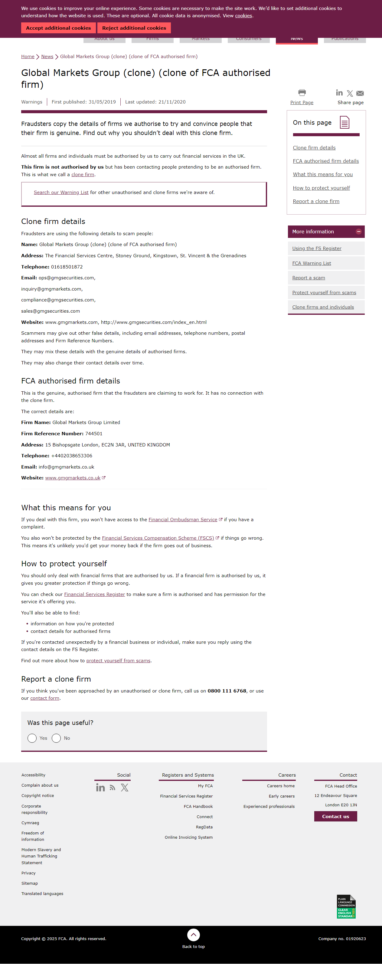 FCA未经授权公司警告名单 Global Markets Group (克隆) (FCA授权公司的克隆).