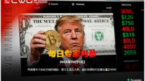 CWG Markets市场资讯2025年10月13日(周一):汇讯摘要:上周五,美元指数盘中跳水,跌破99关口,最终收跌0.56%,报98.835,结束四日连涨。美债收益率全线跳涨,基准的10年期美债收益率收报4.036%,对美联储政策利率敏感的2年期美债收益率收报3.512%。周一(10月13日)亚市早盘,现货黄金继续冲高,一度上涨1%,创下4059.87美元/盎司的历史新高,刷新了上周三的40