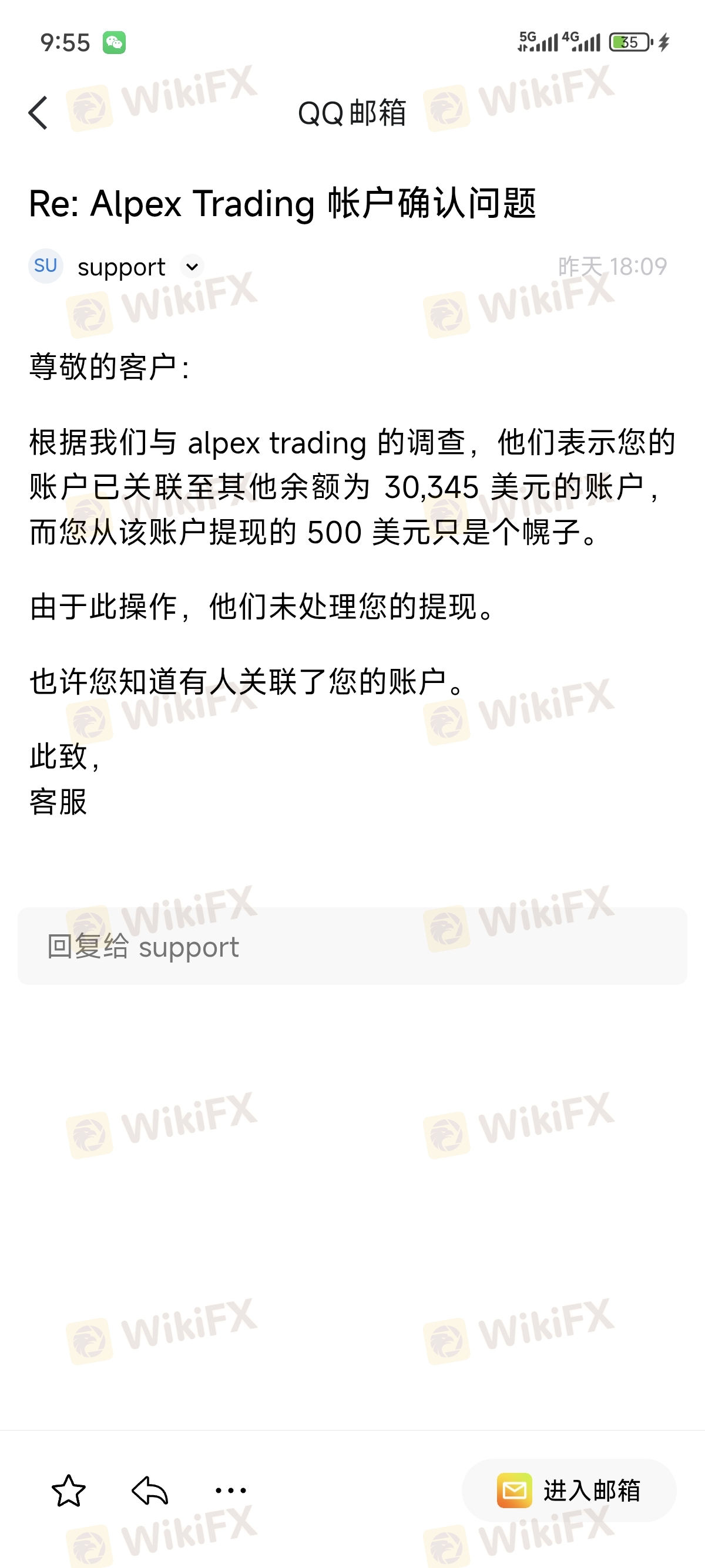 无法出金邮件回复 还污蔑我得账户和其他账户关联,还让我再交2000美金手续费才能出金,在这骗小孩呢,劝大家远离这个平台,不要贪图小便宜
