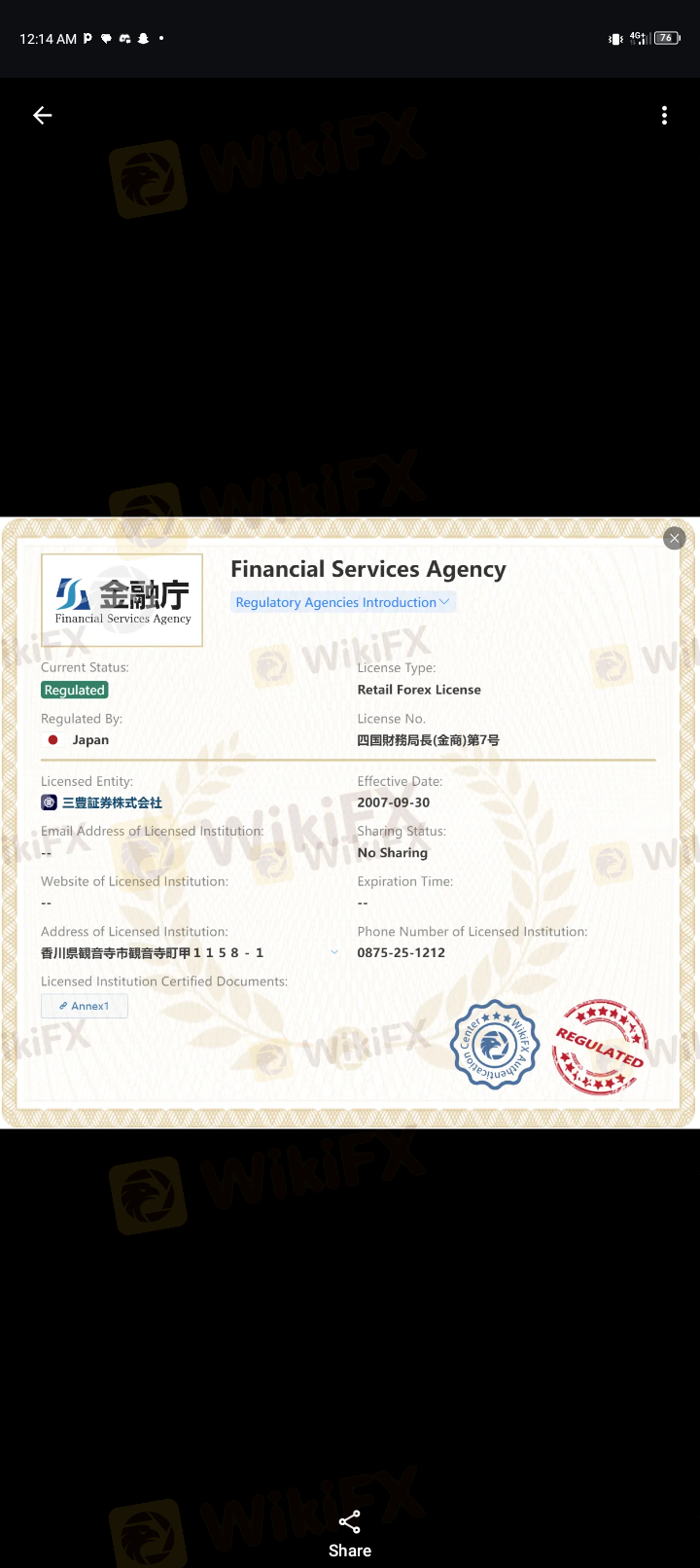 Mitoyo appears to be a well-established Japanese broker with 15–20 years in the industry. It is regulated by Japan's FSA and holds a retail forex license, which adds a layer of credibility. particularly in business operations and risk management. However, there's a note of caution regarding a “suspicious scope of business” and “medium potential risk,” which means investors should do further due diligence. Overall, it seems reputable but worth monitoring closely.