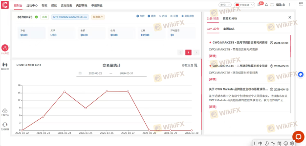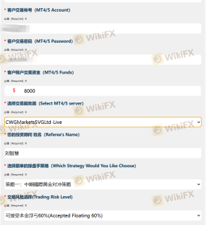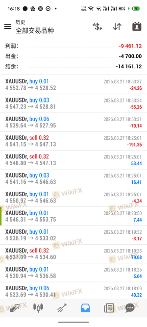 交易过程中被平台CWG合作机构擅自修改风控、策略逻辑,2026年3月24日客户(交易者)签订的风控为8000美金接受最大浮亏为60%,被机构擅自修改为100%,签订量化程序为稳健型策略一黄金对冲。由于平台CWG合作机构的擅自修改,导致2026年3月27日交易过程中净值10000多美金的账户被修改参数,开仓手数加大,补仓间距加密,被强制平仓,风控达100%,亏损9461美金。