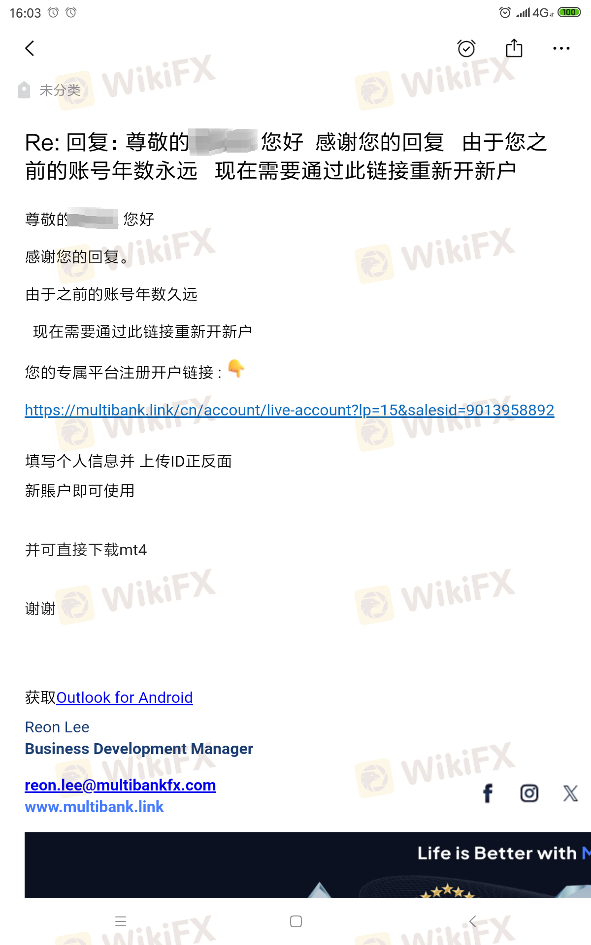 您好,我写信是为了举报 multibankfx 的诈骗行为,我曾是该公司的附属公司,公司本应在 2024 年 2 月支付我 4200 美元的佣金,但公司在没有任何电子邮件的情况下终止了合同,也没有回复任何电子邮件,我尝试了各种方法联系他们,但他们没有回应,请求 WIKIFX 介入帮助解决问题,附件是通过电子邮件和 whatsapp 与经理沟通的与公司的沟通,请帮帮我