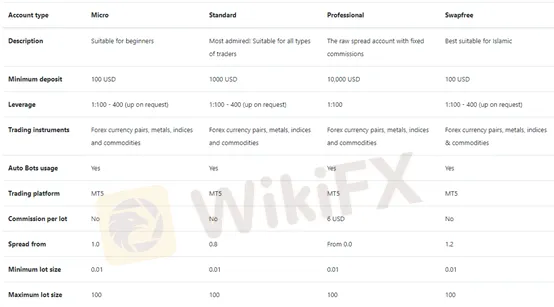 点差和佣金由交易账户决定。基本上,您持有的账户余额越多,您可以获得的点差就越有竞争力。微型账户、标准账户和无隔夜利息账户提供零佣金交易环境,点差分别为 1.0 点、0.8 点和 1.2 点。专业账户持有人可以获得 0.0 点起的点差,佣金为 6 美元。