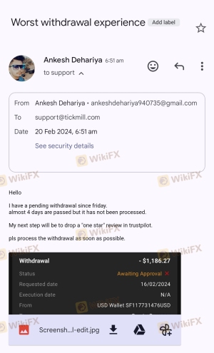 Tickmill不给出金我们账户里的$1186.27,支持团队也没有任何回应。这些钱都是通过他们的跟单平台合法盈利得来的。他们一点都不专业,总是不给出大额出金。希望他们的印度客户能尽快远离该诈骗交易商。