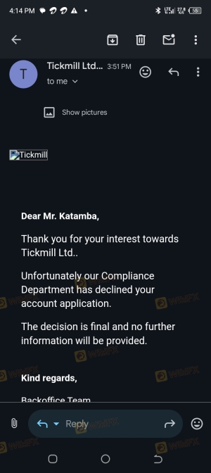 Tickmill利用各种理由不给客户出金