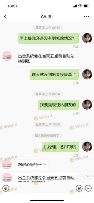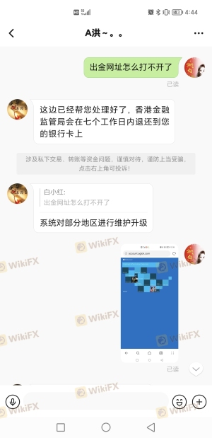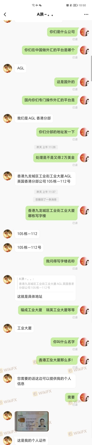 AGL香港分公司员工洪明辉,以送金、返点为理由诱导大家入金,锁定账户不给提现
