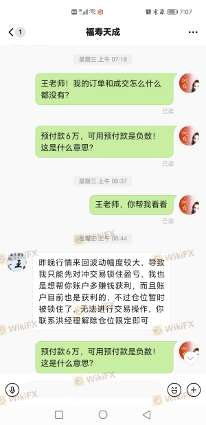 因为自己的无知,叫朋友一起做,一开始就把朋友介绍给那个老王,他一顿操作把账户锁了,平仓不了,说是要充钱把可用预付款负数变正数就可以出金,可是当你充完又说是预付款比例达不到130%平不了仓,有一次充值第二个14万人民币,结果又一个问题说是外汇管制风险出不来,又充值一次又说是资金14万人民币被香港监管部门冻结了,再接着充一次说是可以出金,到今天为止又说出金网址对部分地区维护,还要等一周,一次次的上当,一次次的崩溃,金额已经达到77.7万人民币了,真的不知道该怎么办,请求官方帮助出金。下面聊天记录有我和朋友的电话,有和我们一样的受害者可以一起维权拿回我们的钱。