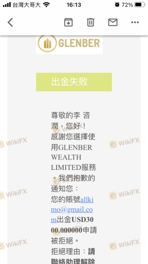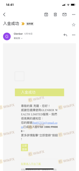 5/03入金1万多美金,5/21出金2000美金、 6/10再出金2000美金, 一直到7/05早上再度出金3000美金, 结果上午不但不给出金,交易代理商还把我所有的钱强制暴仓。 还要我联络客服解除跟单系统才能出金, 当初Glenber网站系统已经无法登入,客服也不理, 再透过其他载点尝试登入时,竟然被告知帐号错误或密码错误。 请大家不要再上当受骗。