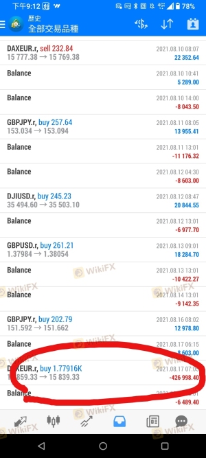 我的帐户内原本应有8400USD我领了1200USD之後,审核一直不通过直到我曝光後,他们突然解除我的封锁然後主动连系我出金问题当天就领到1200USD的出金了,领到出金的当晚我的帐户剩下的7200USD也被他们清空了我根本都没提领,如图,我最後一次出金审核是1200USD然後我帐户的流水被他们用一笔系统出金扣了7200USD如果是我自己出金的话应该会是用本地银行汇款的方式转至我的帐户但我根本没送出金审核,也根本没收到这笔钱