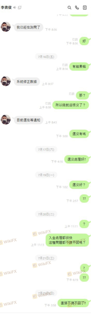 无法出金 随後该公司就将客户帐户的资金 操作为负帐询问该公司的客服 不读不回