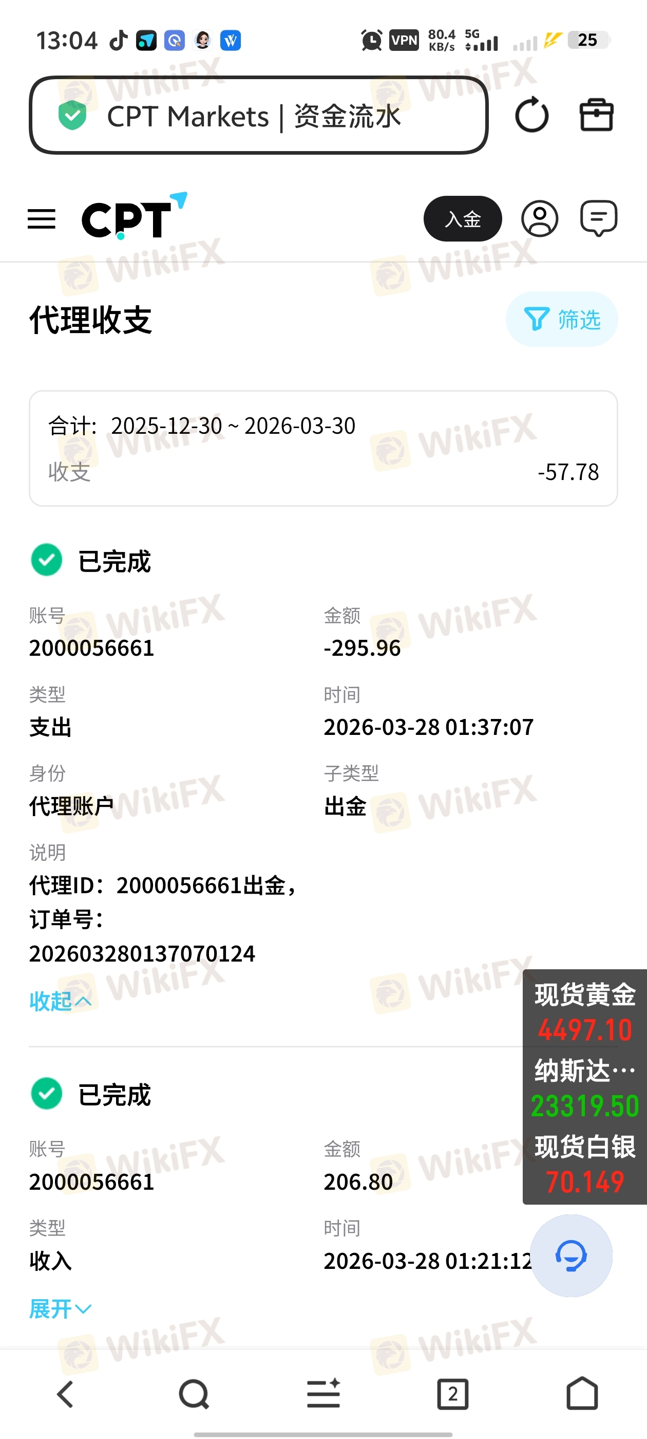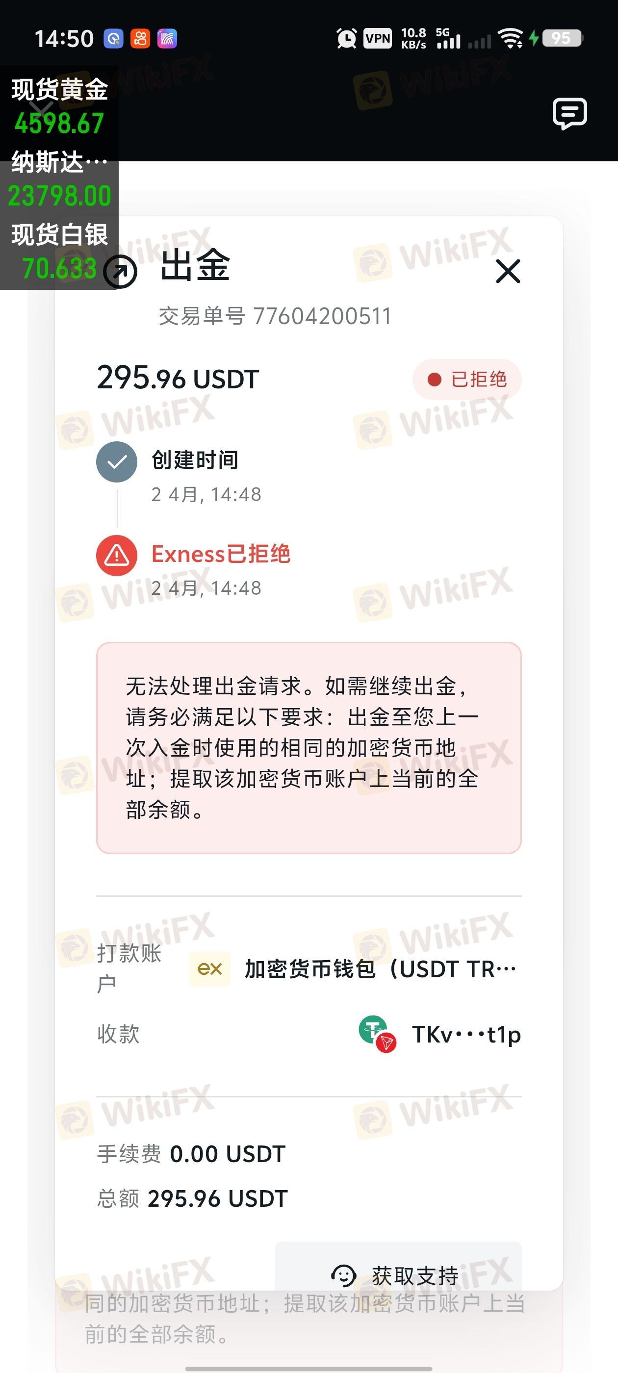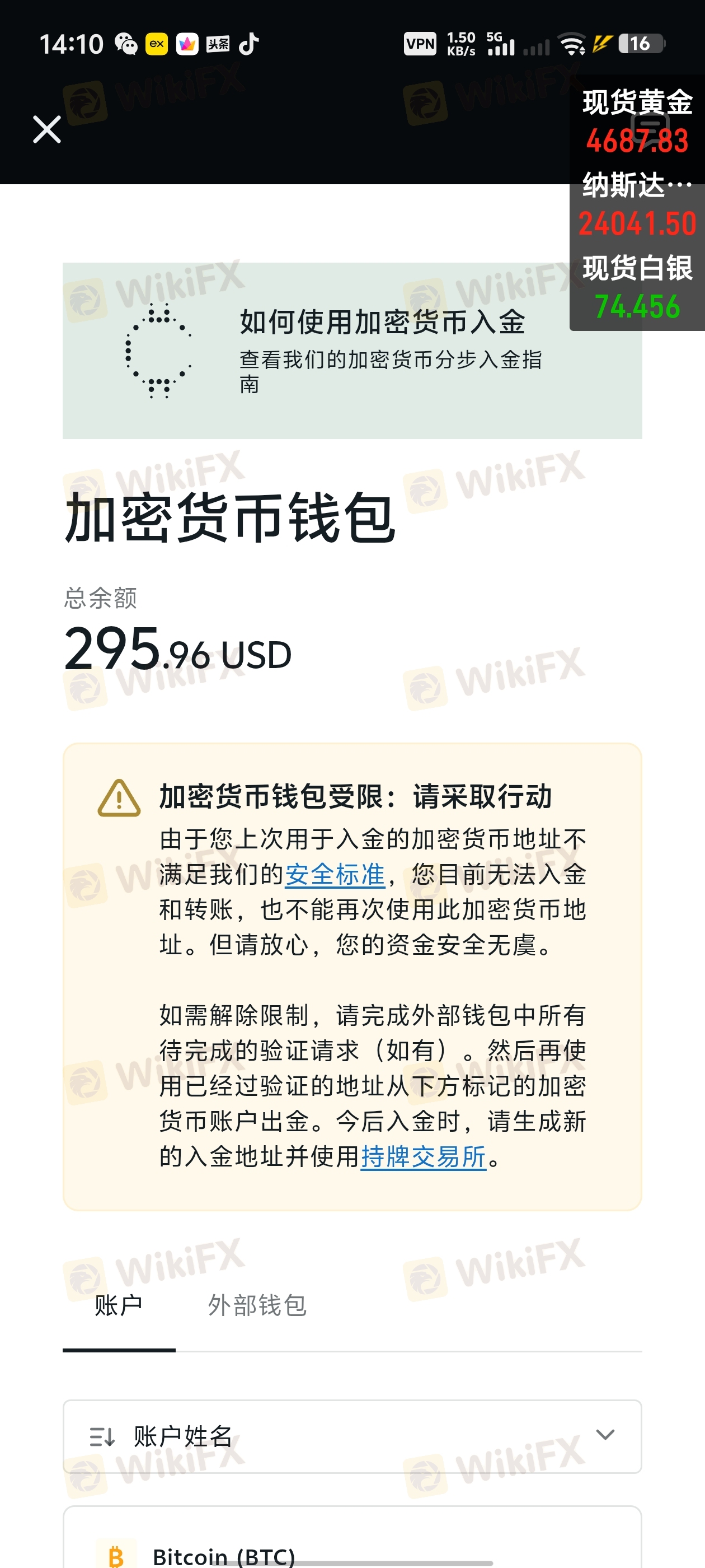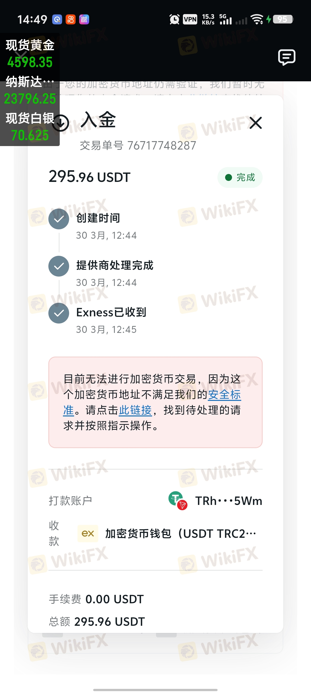 通过CPT向Exness入金,账户被Exness冻结,不让出金,也无法交易