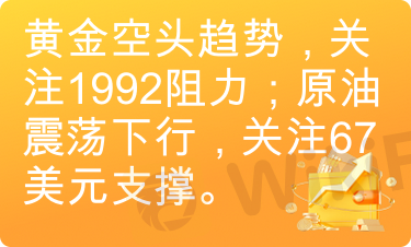 黄金技术面:黄金自上周以来的空头趋势明显,反弹力度较弱,但下跌或处于尾声。日内上方关注1992美元的阻力,下方关注1972和1964美元的支撑。
