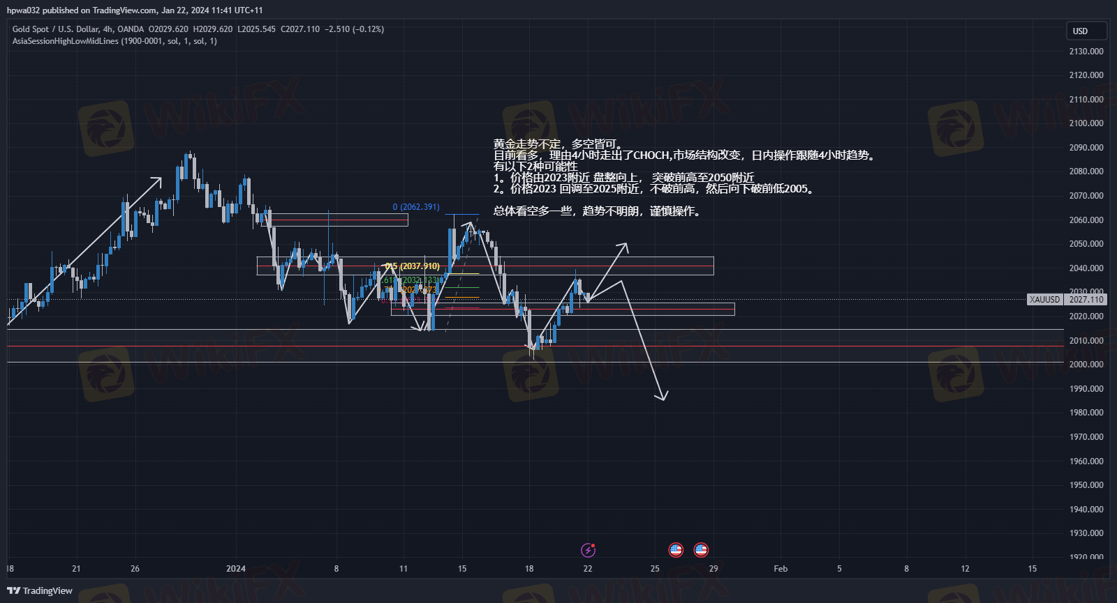 行情分析20240122 黄金日内前瞻 价格行为