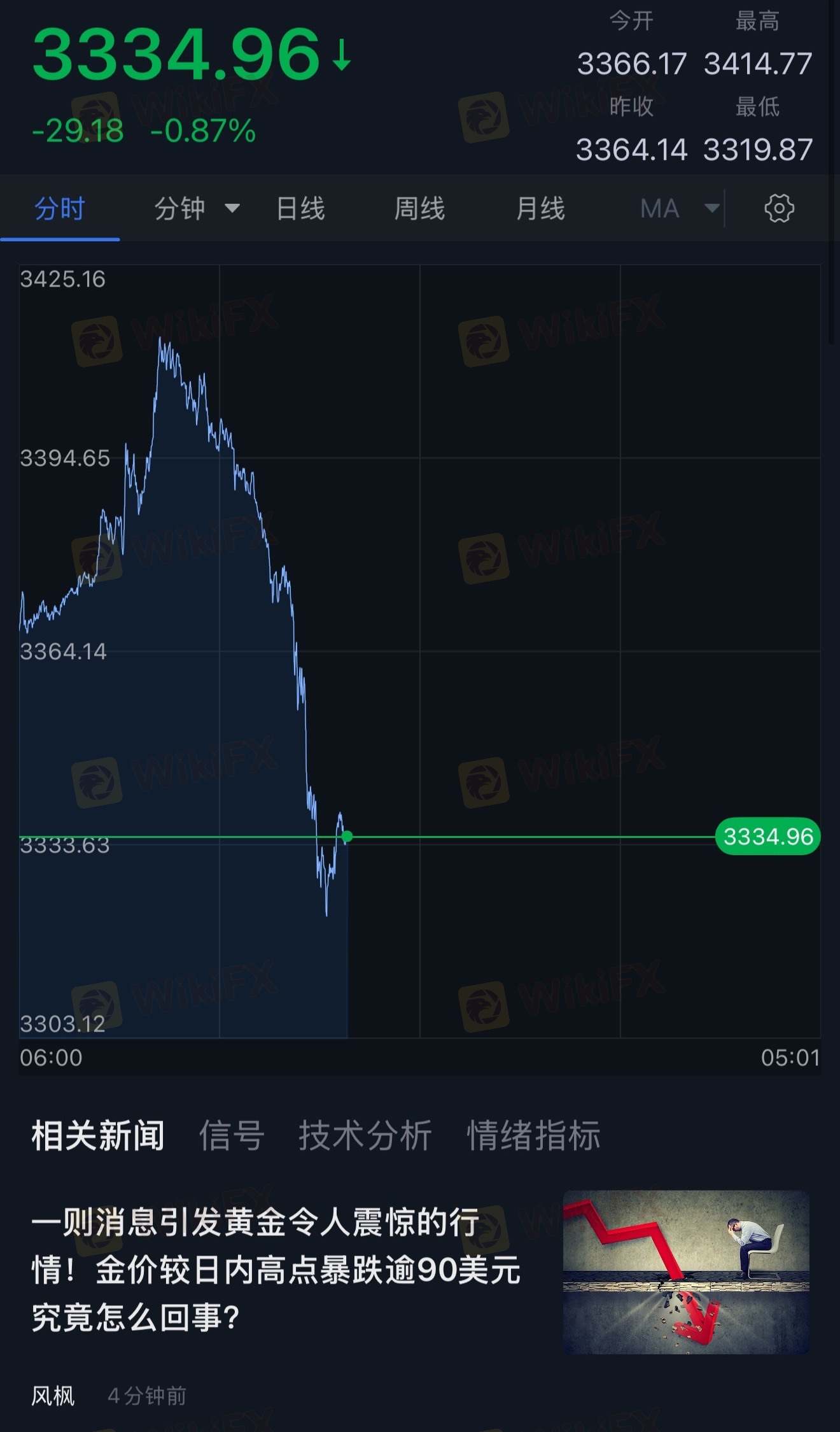 业内摘要:周四亚市尾盘,现货黄金突然加速下滑,金价刚刚跌至3321.62美元/盎司