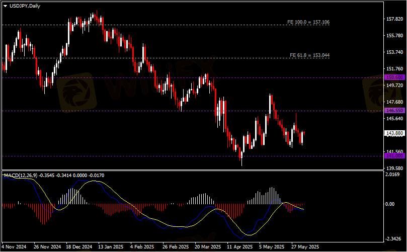 日线图显示美元兑日元反弹上行,当前仍承压于146.60阻力。从MACD来看,快慢线欲形成金叉,红色动能柱温和收缩。汇价走势基本和动能柱的变化一致。