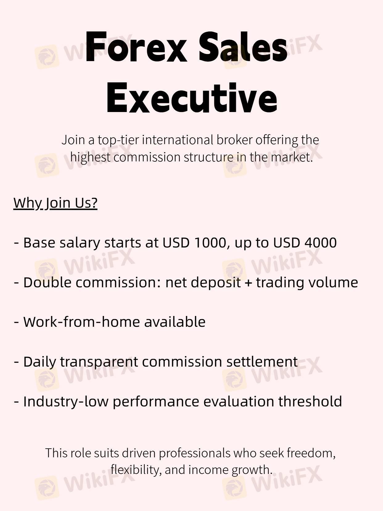 Join a top-tier international broker offering the highest commission structure in the market Why Join Us? - Base salary starts at USD 1000, up to USD 4000 - Double commission: net deposit + trading volume - Work-from-home available - Weekly transparent commission settlement - Industry-low performance evaluation threshold - This role suits driven professionals who seek freedom, flexibility, and income growth.