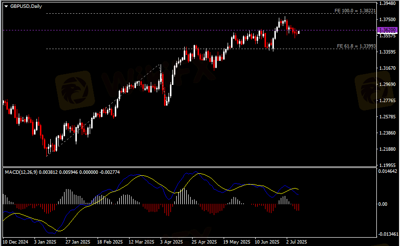 日线图显示英镑兑美元回调暂缓,当前仍承压于1.3620阻力。从MACD来看,快慢线向下运行,红色动能柱温和放量。汇价走势和动能柱的变化呈分歧。