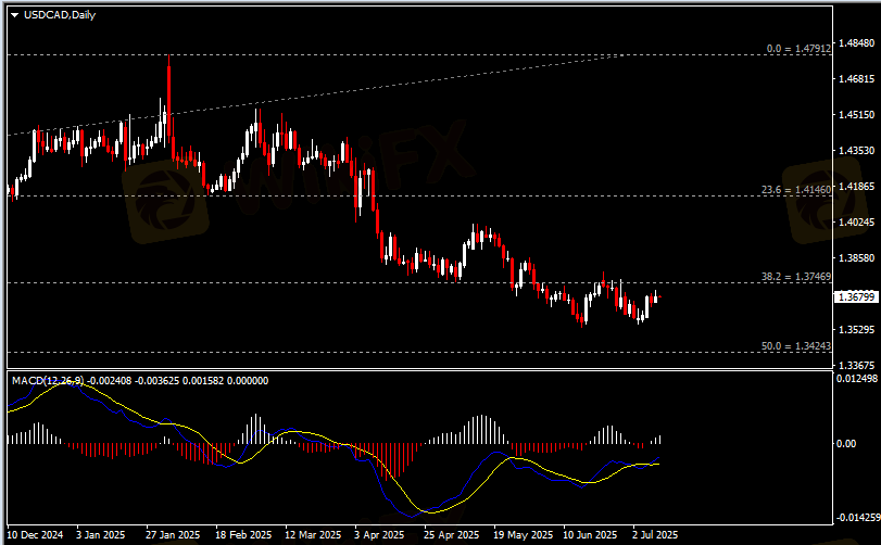 日线图显示美元兑加元震荡上行,当前仍承压于1.3750阻力。从MACD来看,快慢线拐向上行,白色动能柱温和增量。汇价走势基本和动能柱的变化一致。