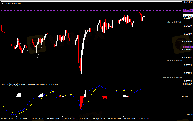 日线图显示澳元兑美元企稳反弹,当前仍承压于0.66关键阻力。从MACD来看,快慢线拐向下行,红色动能柱温和增量。汇价走势和动能柱的变化呈分歧。