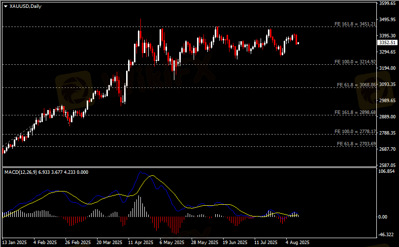 日线图显示金价回调下挫,当前承压于3450阻力。从MACD来看,快慢线呈拐向,白色动能柱温和收缩。金价走势基本和动能柱的变化一致。