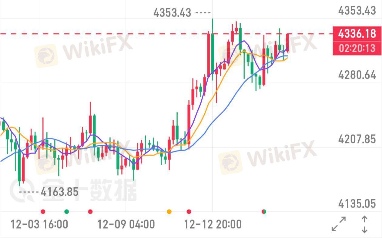4315一线布局多单,4305位置补仓增强头寸,目标依次看向4335、4360。