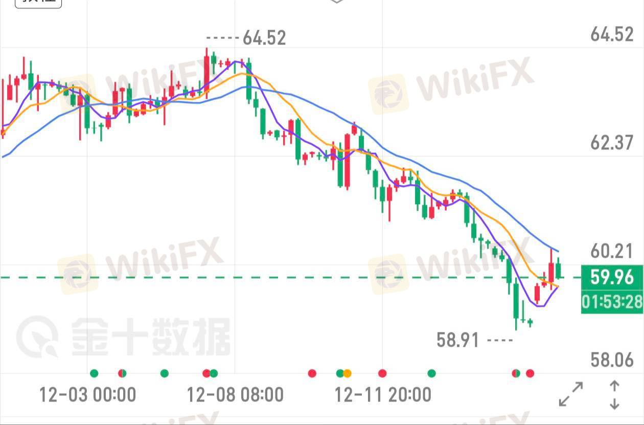 布油日内自58.97低位反弹至60.56,此轮反弹仅为下跌趋势中的技术性修复,空头主导格局未发生本质改变,当前市场正处于关键抉择节点。60.00-60.18区间为核心支撑带,后续走势将呈现两大方向:要么在此区域休整后延续下行趋势,要么短暂反弹后再陷回调。