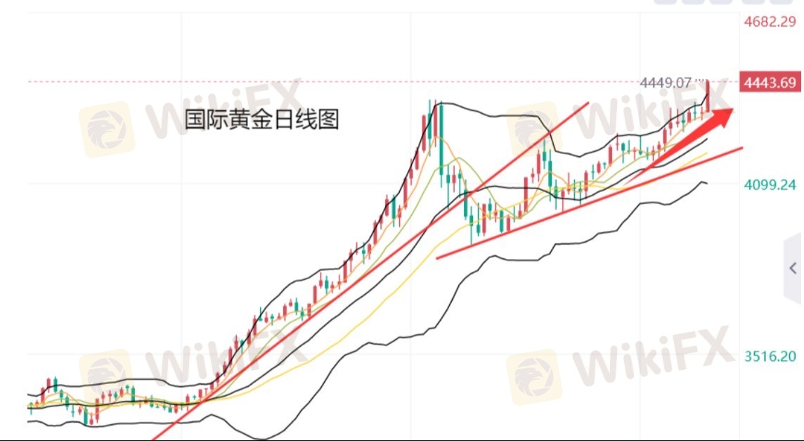 从之后的走势看,昨日周一亚盘开盘后,黄金直接上涨,很快突破历史高点4381美元,并在之后继续上涨,不断创造新的历史高点,最终在收盘前,刷新历史新高至4449美元。黄金延续了11月止跌企稳以来的上升趋势,单日上涨超过100美元,突破最近一周历史高点对金价的压制,短期表现比我们预期的更加强劲。