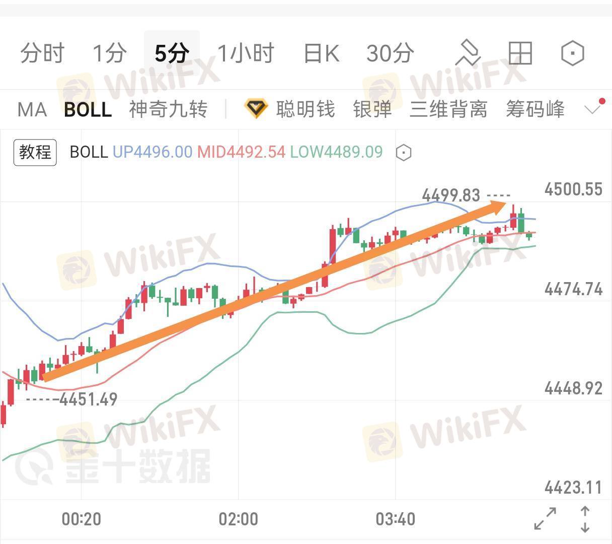 昨日黄金节奏清晰,盟主明确提示跌破4450果断追多、目标4500,行情精准验证!金价随后一路冲高突破4510,多单全程收割利润,即便中途入场,也有清晰布局空间。