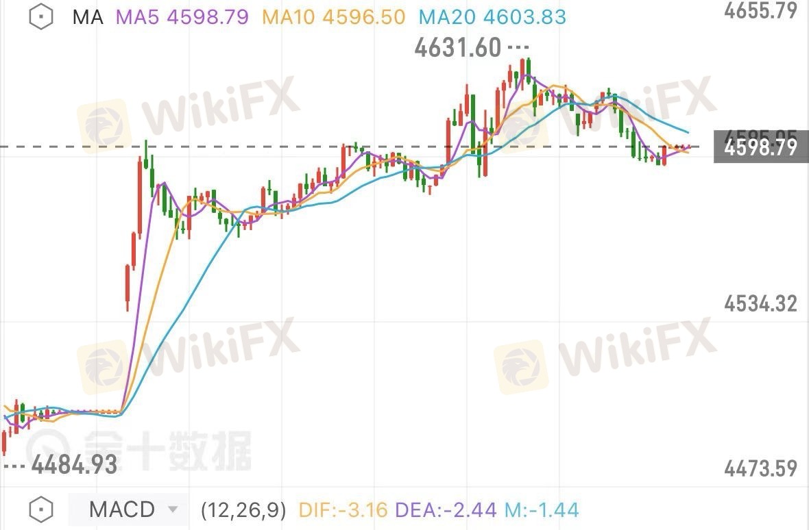 从技术指标来看,日线级别依旧保持稳定连阳状态,MACD金叉上行且具有较强延续性,RSI 超买情绪强烈,结合近期宏观因素来看目前虽有小幅回调但在未跌破支撑4560前仍保持回调做多为主!