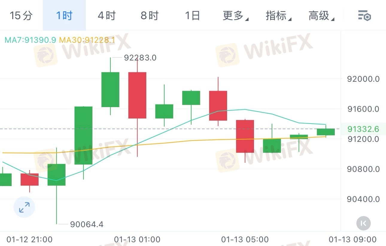 周末震荡两天,周一两次触及92500一线后继续回落,
