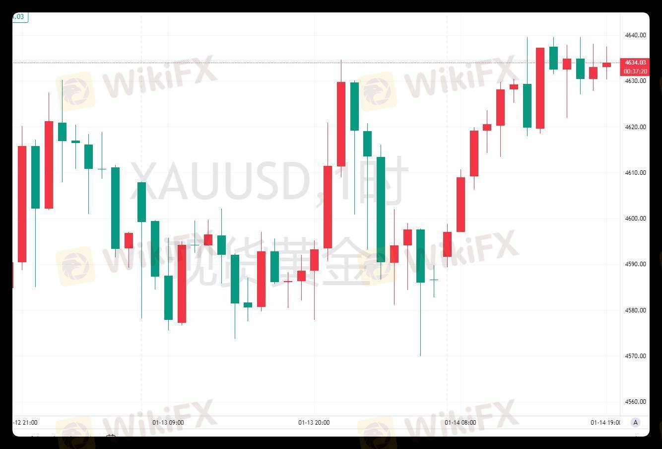 昨晚至今现货黄金走出“V型反转”走势,从4580下方的低位一路反弹,日内更是冲高至4639.60,当前维持在4630上方高位震荡。早盘金价依托4590支撑小幅走高,午后受买盘推动试探4640关口未果,整体呈现“冲高遇阻、高位震荡”的格局,这也是本周黄金反弹趋势中典型的节奏特征。