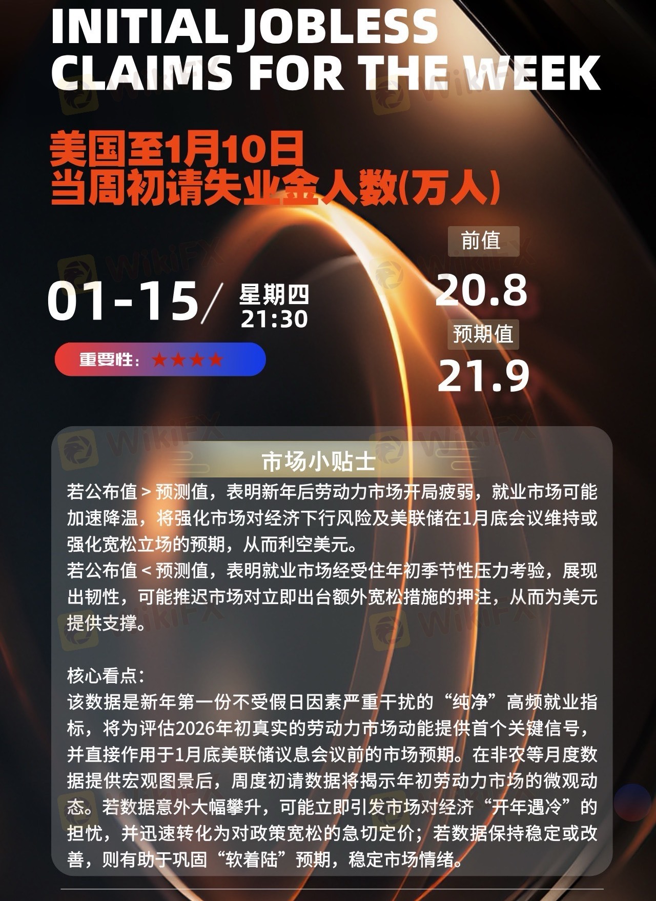 PowerTrading 重要财经事件通知 (2026年1月15日) :美国至1月10日当周初请失业金人数