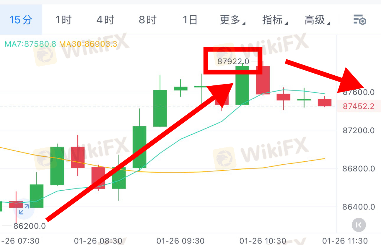从实际走势来看,行情在反弹过程中最高触及 87922,与我们给出的目标位仅一步之遥,几乎可以视为精准到位。随着反弹动能的逐步衰减,盘面也开始出现下滑迹象