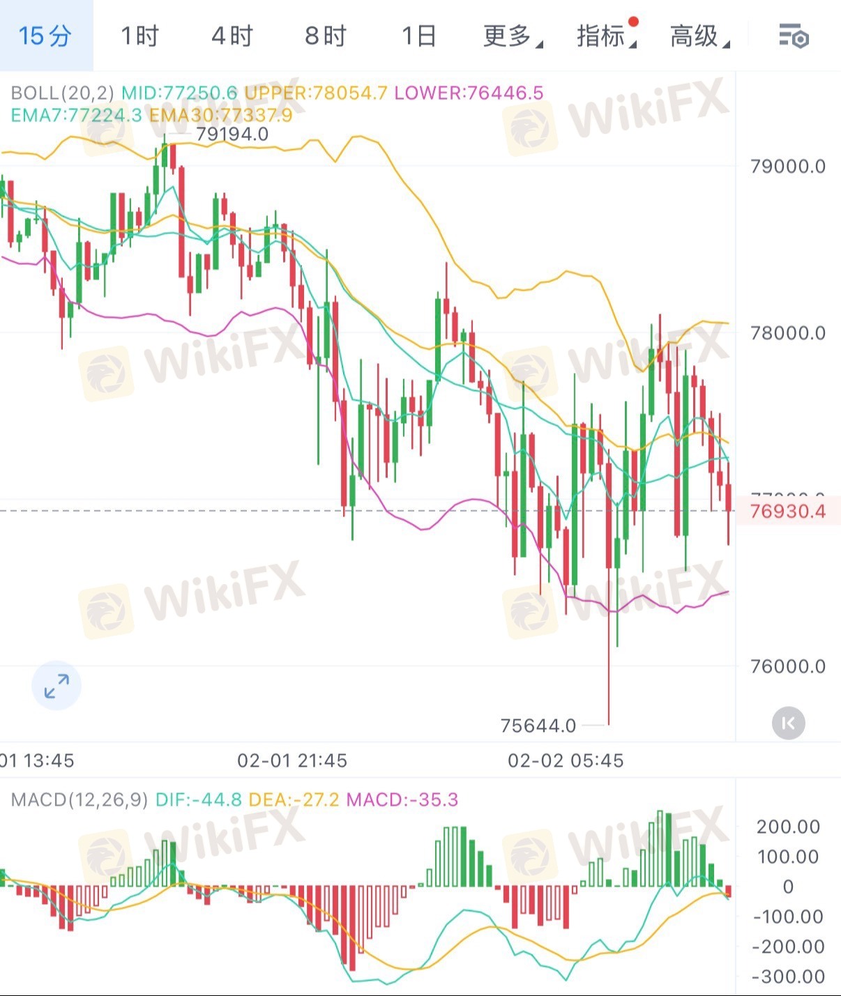 • BTC 🪙:现价约76,900 USD,处于深度回踩后的低位震荡阶段,76,500为今日关键支撑,守住则有反弹机会,下破则进一步走弱。