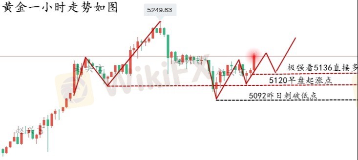 早盘金价回撤至5120周一起涨点后再度拉升至5180上方,典型震荡洗盘走势。
