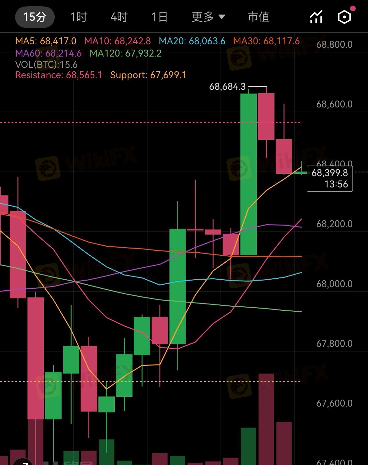 大饼小时级别呈多头结构,趋势偏强,切勿盲目做空。