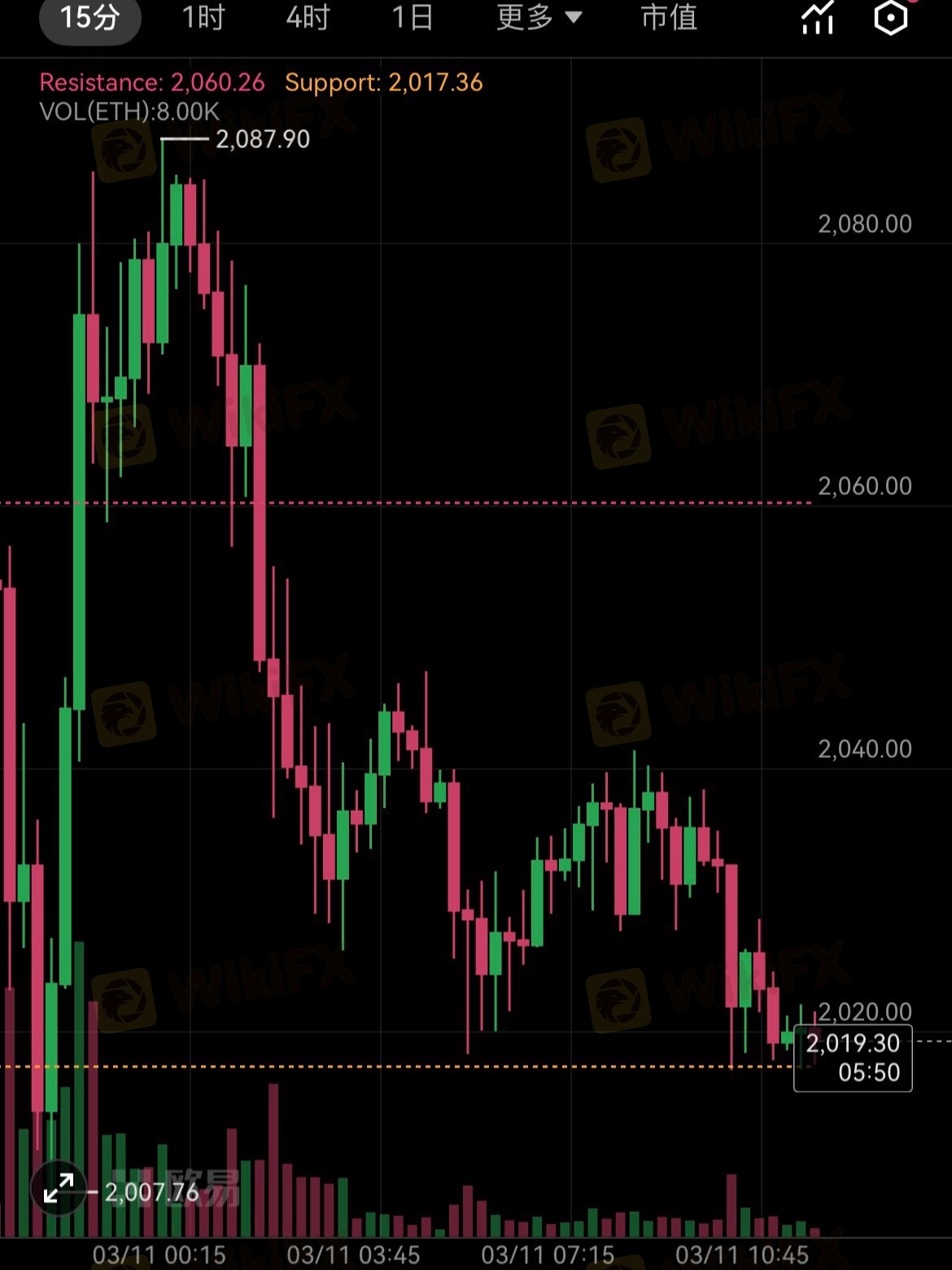 4小时级别跌破2007向下看1956-1910。 午间姨太思路