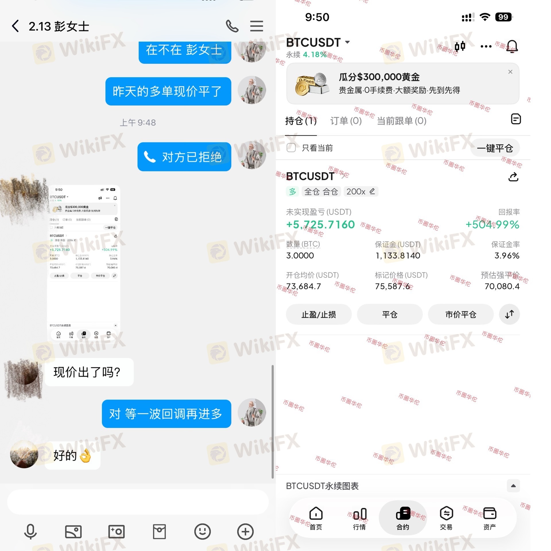 业内BTC多单获利出局