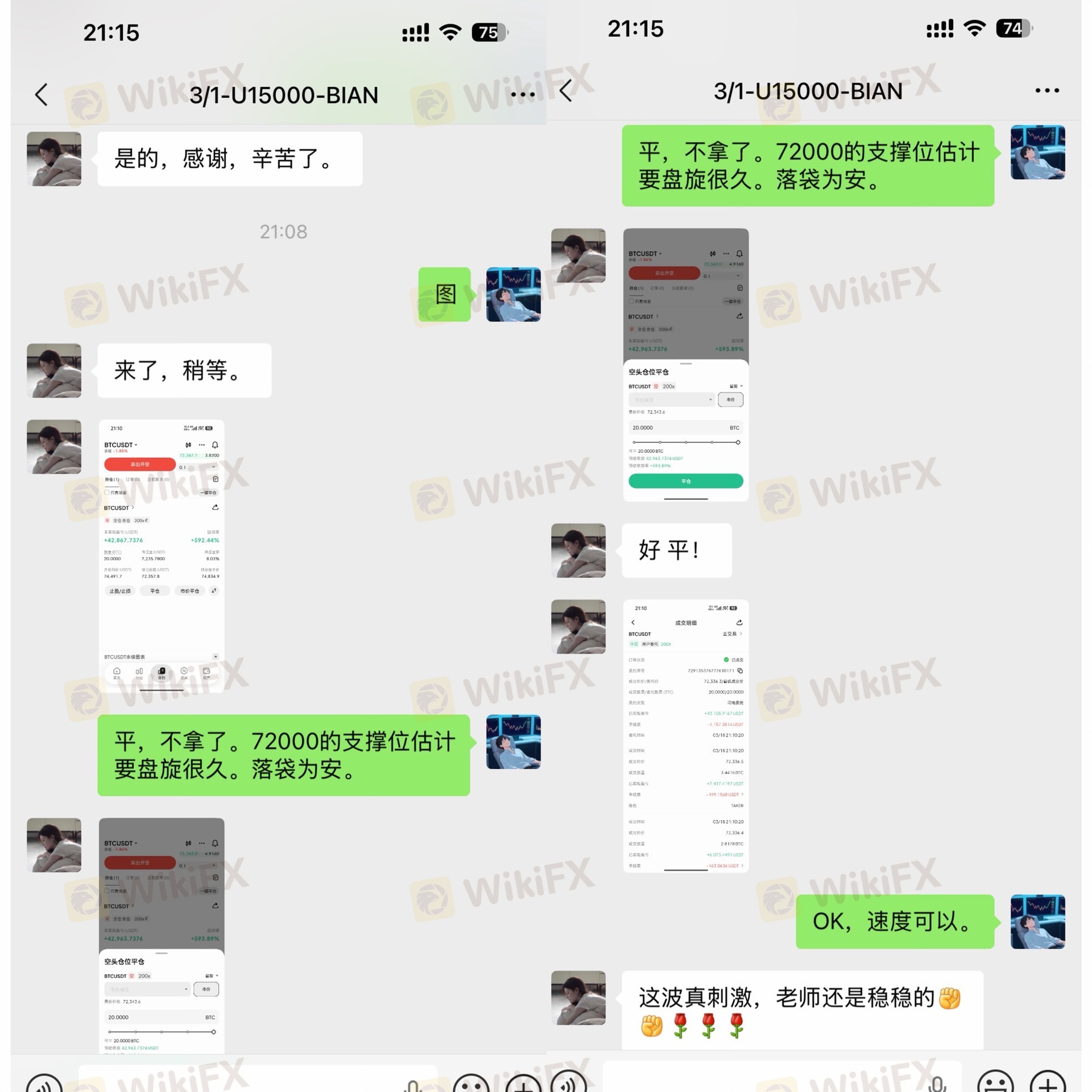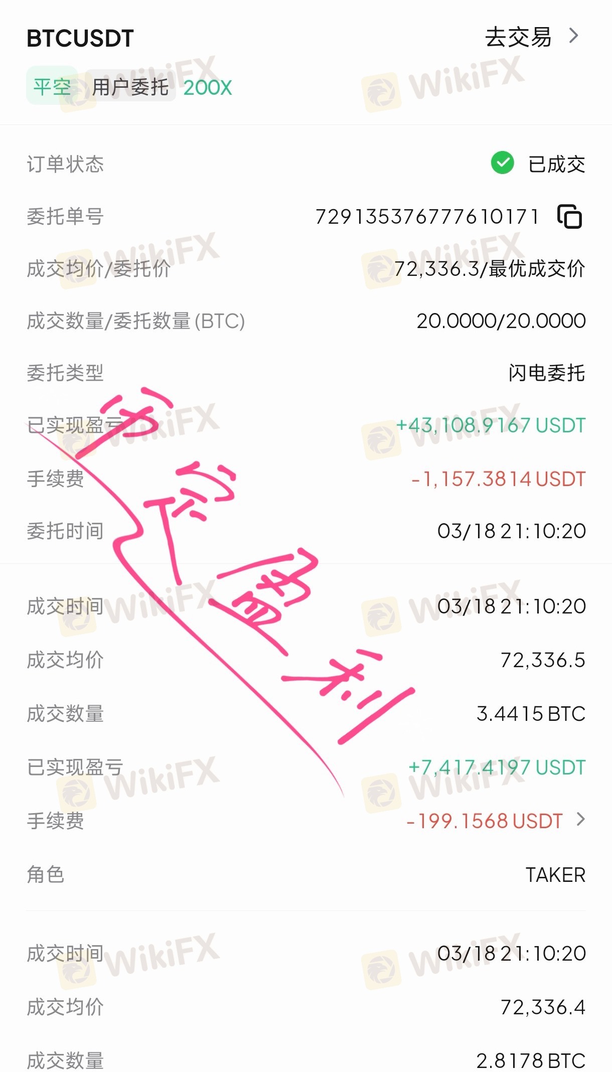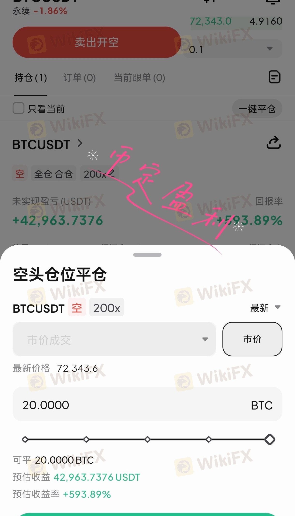 74491开空,72357平仓,
