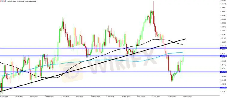 消息公布后,加元/美元上涨,测试200日移动平均线(蓝线)和1.36枢轴。然而,价格可能很快在上月快速看跌的1.36枢轴附近遇到阻力。