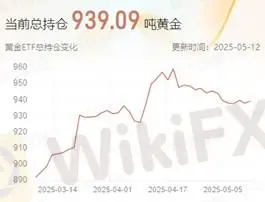 截至5月12日,全球最大的黄金ETF SPDR Gold Trust持仓量为939.09吨,较前一个交易日增加1.15吨。5月12日,现货黄金大跌,盘中一度下挫至3207.71美元盎司,为超一周以来的最低水平,收报3234.95美元)盎司,跌90.49美元或2.72%。
