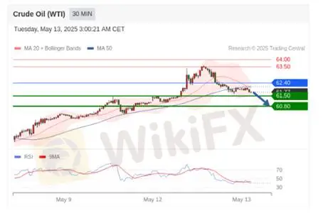 交易策略: 在 62.40 之下,看跌,目标价位为 61.50,然后为 60.80。