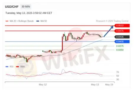 交易策略: 在 0.8405 之上,看涨,目标价位为 0.8475,然后为 0.8510。