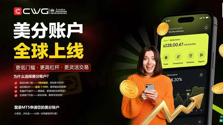 摘要:无论是交易新手还是资深投资者,CWG美分账户的上线都为全球用户带来了更多的机会。您可以享受更低的门槛,更高的杠杆,以及更加灵活的交易体验。通过MT5平台,随时随地查看您的交易状况,让每一分投入都更具价值。现在就注册CWG美分账户,加入我们,开启更灵活、便捷的交易之旅!