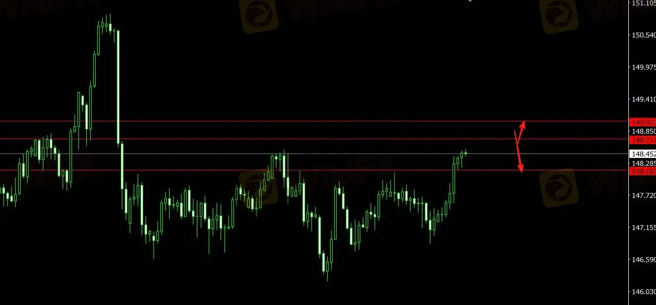 美元指数受支撑,日元反弹受阻,关注支撑位148.170,4小时看多至149.020;关注压力位148.710,4小时看空至147.950。
