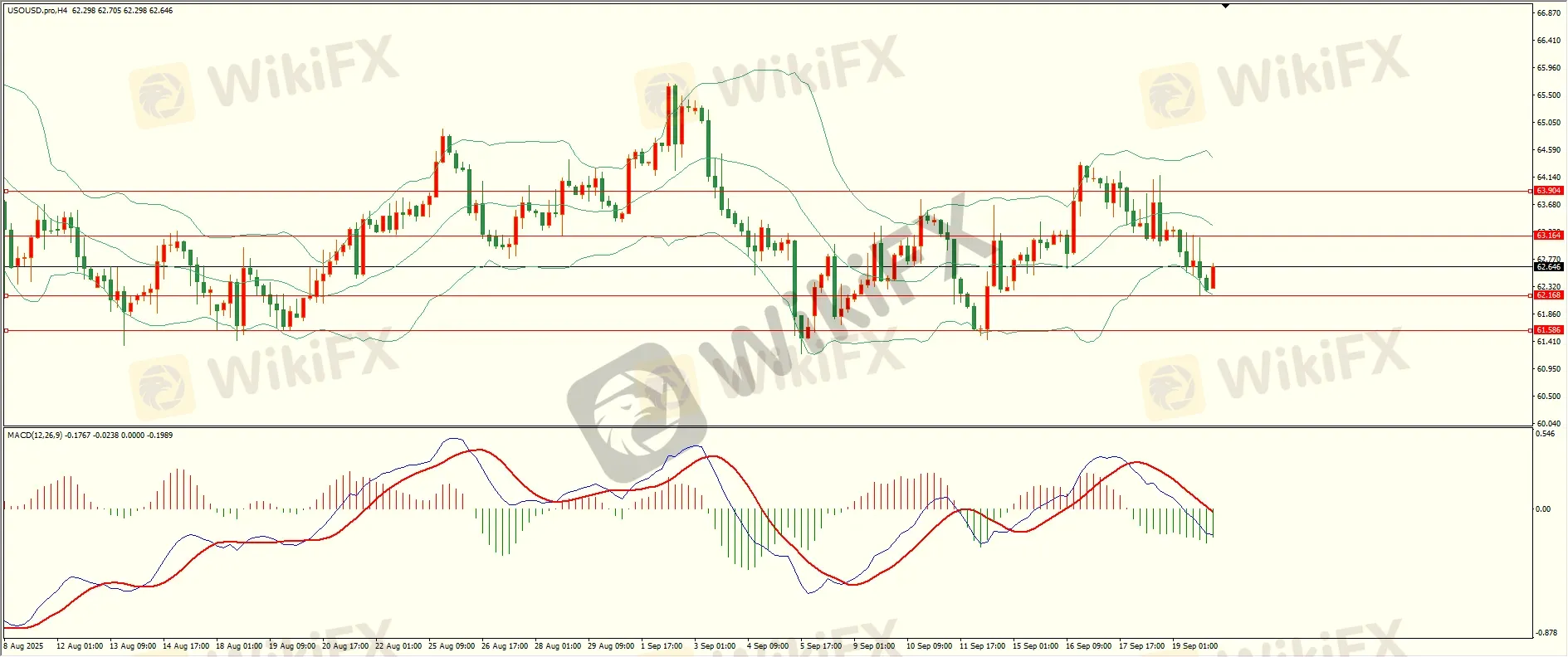 原油上周五亚市开盘后延续下行,至收盘续创日内新低,日线报收中阴线,短线略有偏空,从4H来看,布林中轨偏下,MACD零轴下方运行,日内上方首要阻力63.15,第二阻力63.90,下方支撑62.15,61.55,第一阻力在没有收复前短线有望测试第一支撑。